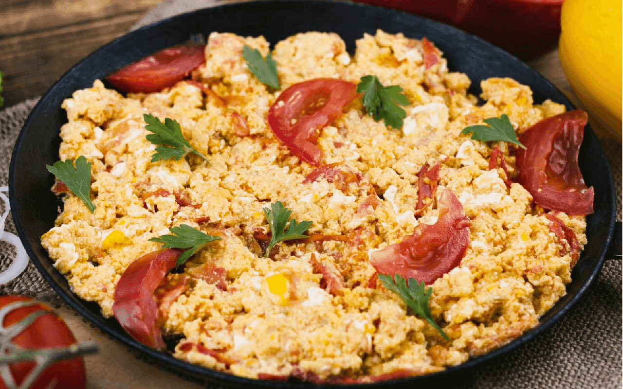 Try scrambled eggs with tomatoes or yogurt with nuts.