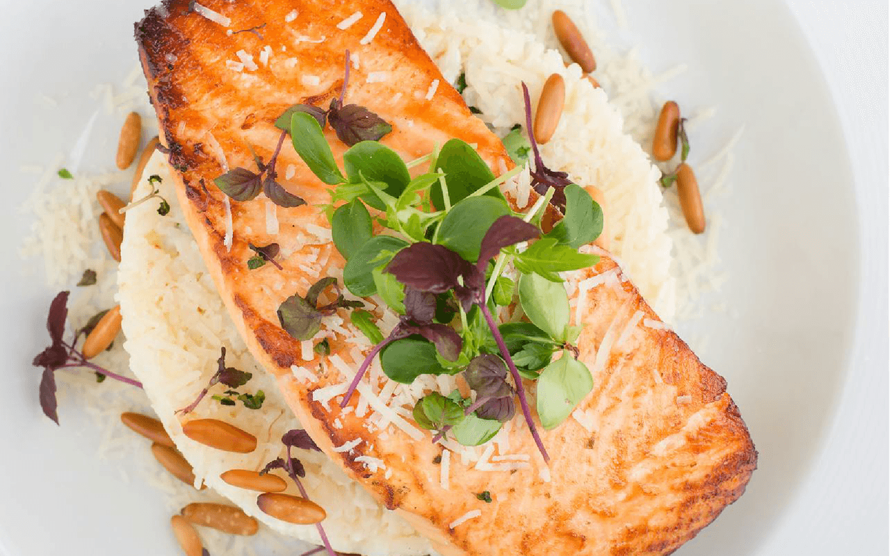 Dinner: Baked salmon with roasted veggies and brown rice.