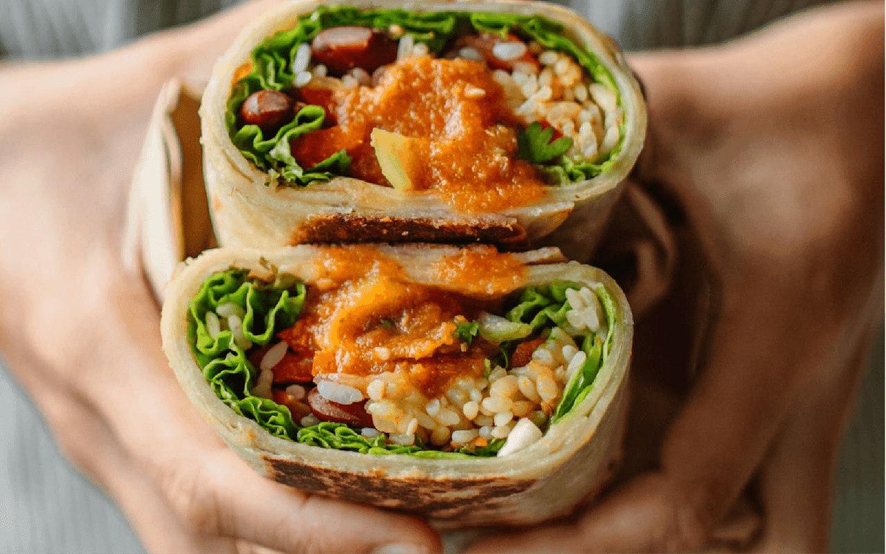 Lunch: Turkey wrap with avocado, lettuce, and tomato.