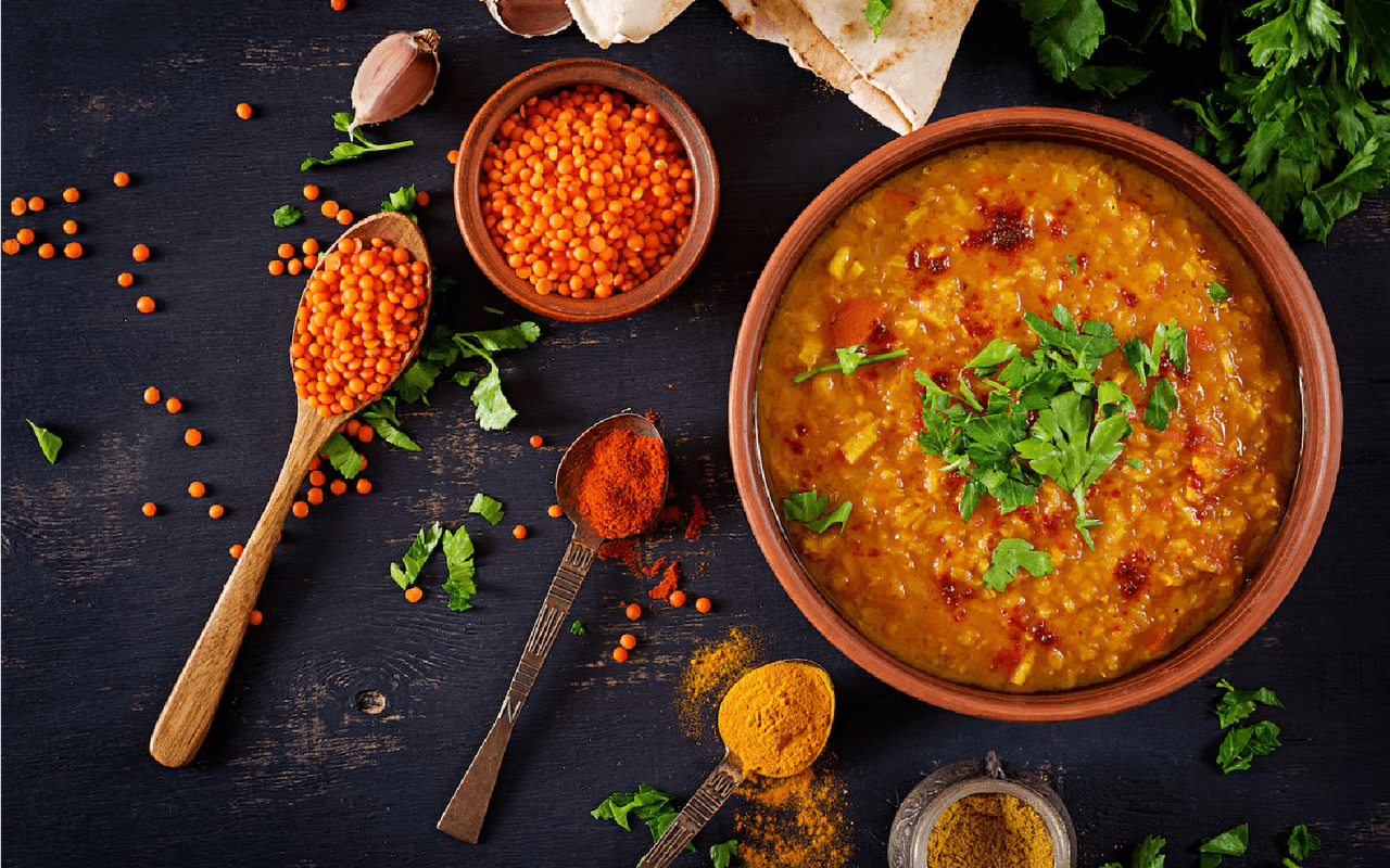 Lentil stew flavored with fenugreek leaves and saffron.