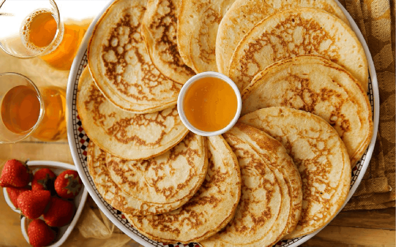 Chebab, also known as Emirati pancakes, are soft, fluffy, and traditionally served with honey or syrup. For a healthier take: