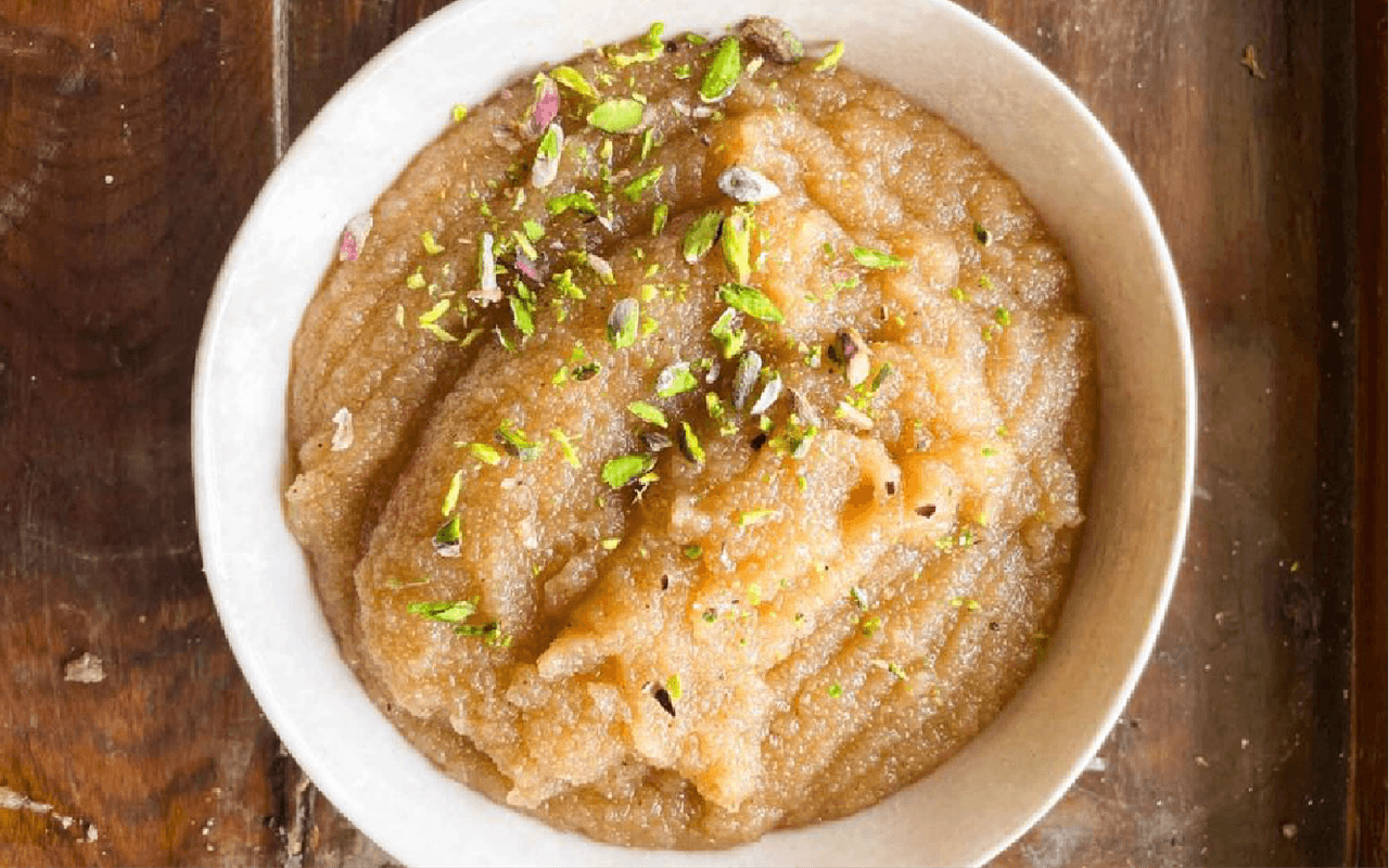 Khabees is a creamy pudding made with semolina, milk, and sugar. It’s often flavored with cardamom and saffron. For a lighter version: