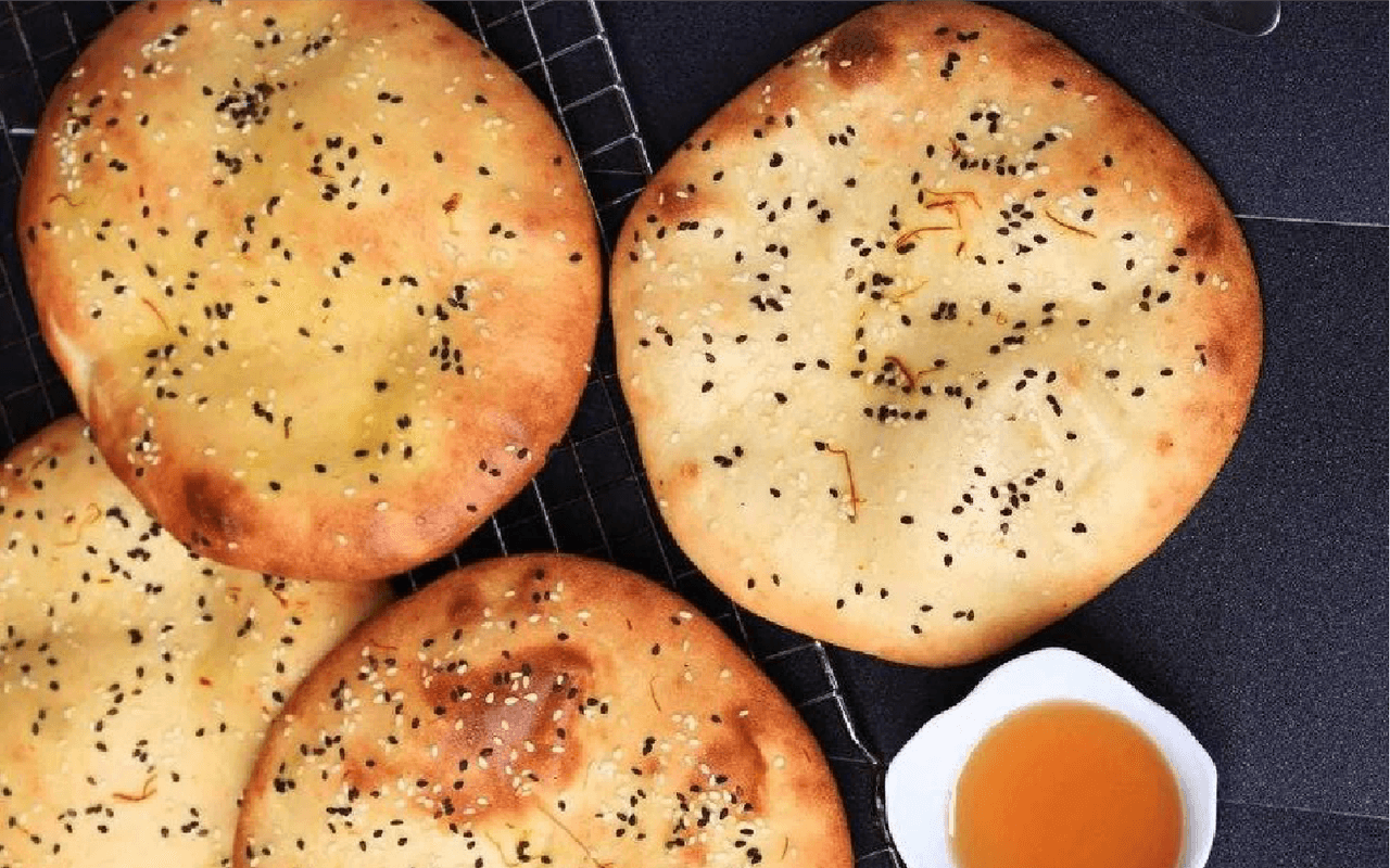 Khameer is a type of flatbread made with yeast and flavored with saffron or cardamom. It’s soft, slightly sweet, and perfect for breakfast. For a healthier version: